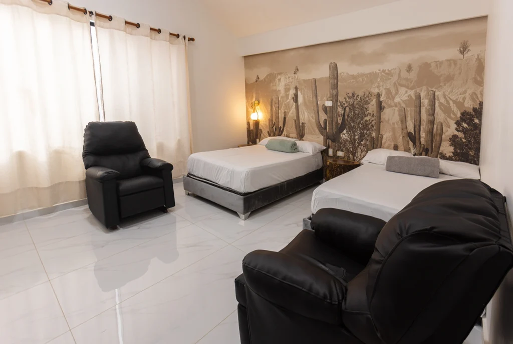 Nuestras habitaciones cuentan con Aire acondicionado, TV cable, Netlix y caja de seguridad.